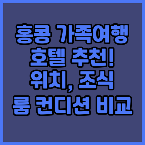 본 포스팅에서는 가족 여행에 최적화된 홍콩 호텔 선택의 모든 것을 알려드립니다. 위치, 조식, 룸 컨디션 등 가족 구성원 모두가 만족할 호텔을 엄선하여 비교 분석해 드립니다. 완벽한 가족 여행을 위한 호텔 선택, 지금부터 함께 알아볼까요? 끝까지 읽으시면 홍콩 가족여행 호텔 선택에 대한 놀라운 꿀팁을 얻으실 수 있을 겁니다!